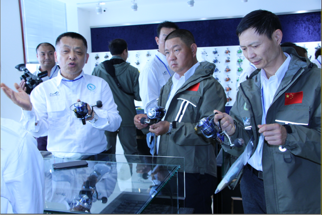 4月28日,參加2016年“寧波杭州灣中源杯”中國首屆CAA會員釣魚節(jié)新聞發(fā)布會的中國釣魚運(yùn)動協(xié)會領(lǐng)導(dǎo)、CAA各省級會員中心主任及相關(guān)項目負(fù)責(zé)人、行業(yè)內(nèi)外新聞媒體記者、企業(yè)代表等近百人,參觀了釣魚節(jié)的主要發(fā)起單位、新聞發(fā)布會主辦單位——寧波中源歐佳漁具股份有限公司。董事長張國軍,總經(jīng)理嚴(yán)軍威等主要領(lǐng)導(dǎo)陪同參觀。